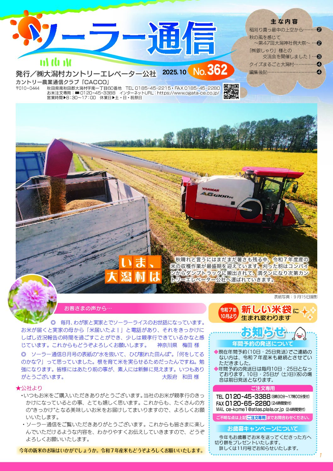 ソーラーライス減・減米生産組織、大潟村自然農法研究会、サキホコレ栽培研究会、カントリー青年農業者クラブ、そしてカントリー宅配野菜クラブといった生産組織が、お米をはじめとした農産物の生産に関する知識と技術を高めています。